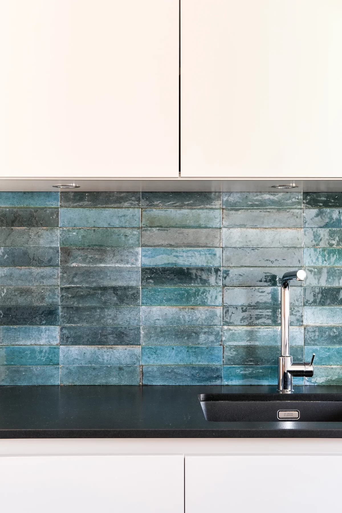 - Plans de travail également noirs, pour une continuité visuelle et un aspect contemporain