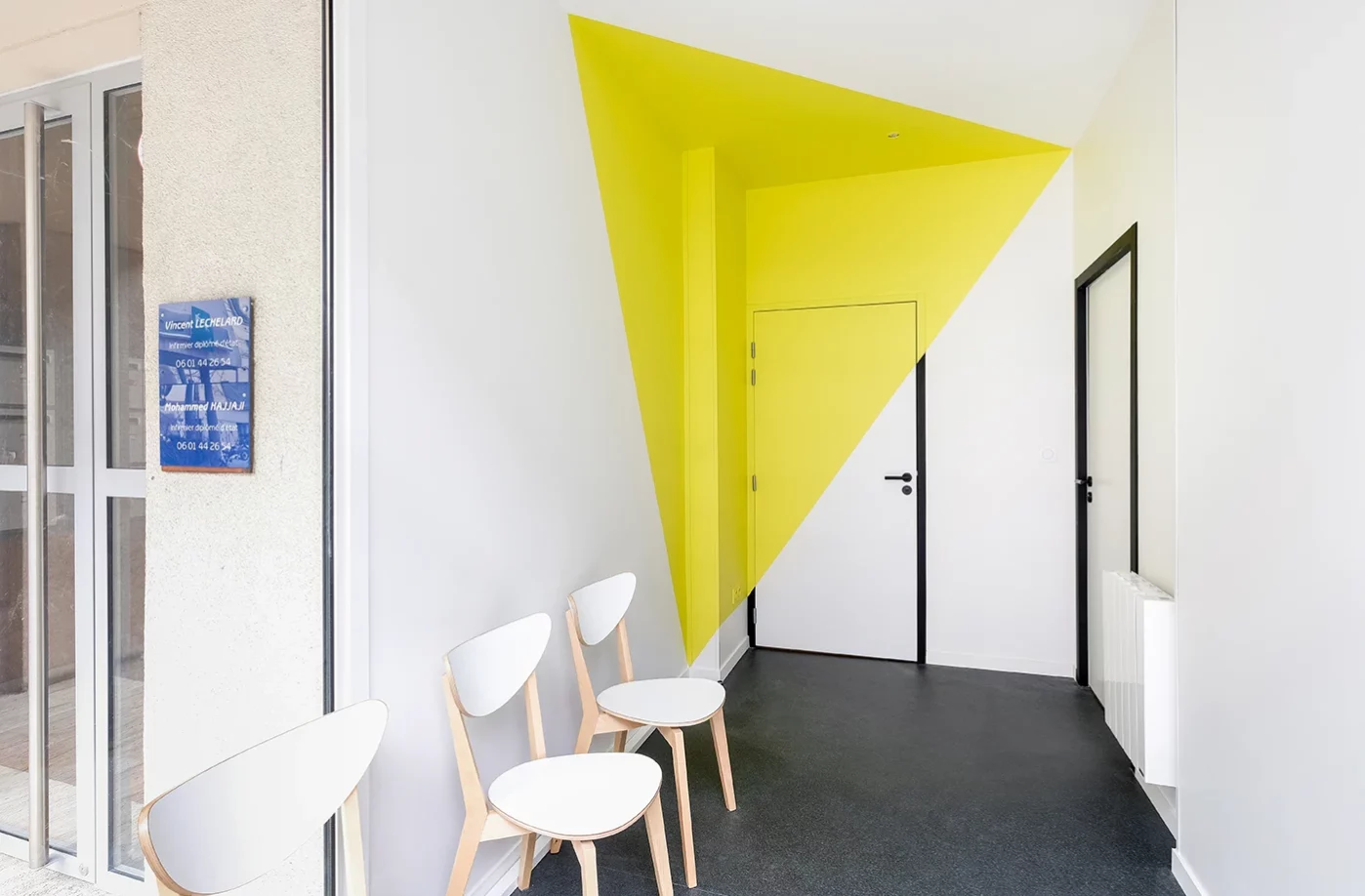 - Cabinet médical pensé pour l’accueil des patients: conception d’un espace fonctionnel et accueillant, alliant design épuré et ergonomie.