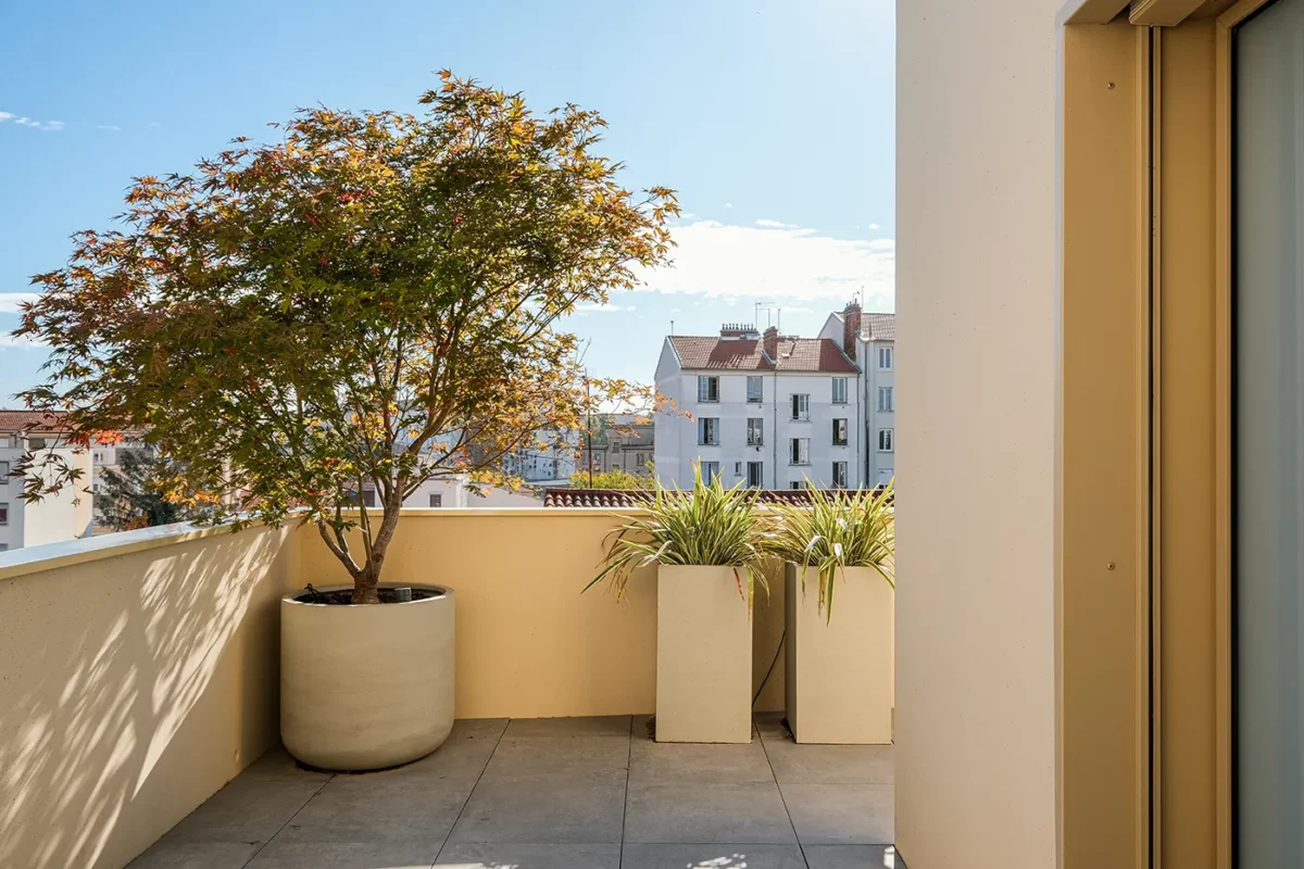 Découvrez cet appartement d’exception, situé au dernier étage d’un immeuble neuf dans le 3ᵉ arrondissement de Lyon, offrant deux terrasses spacieuses de 60 m² et 95 m². Véritables extensions de l’intérieur, ces espaces extérieurs incarnent le parfait équilibre entre design, intimité et confort.