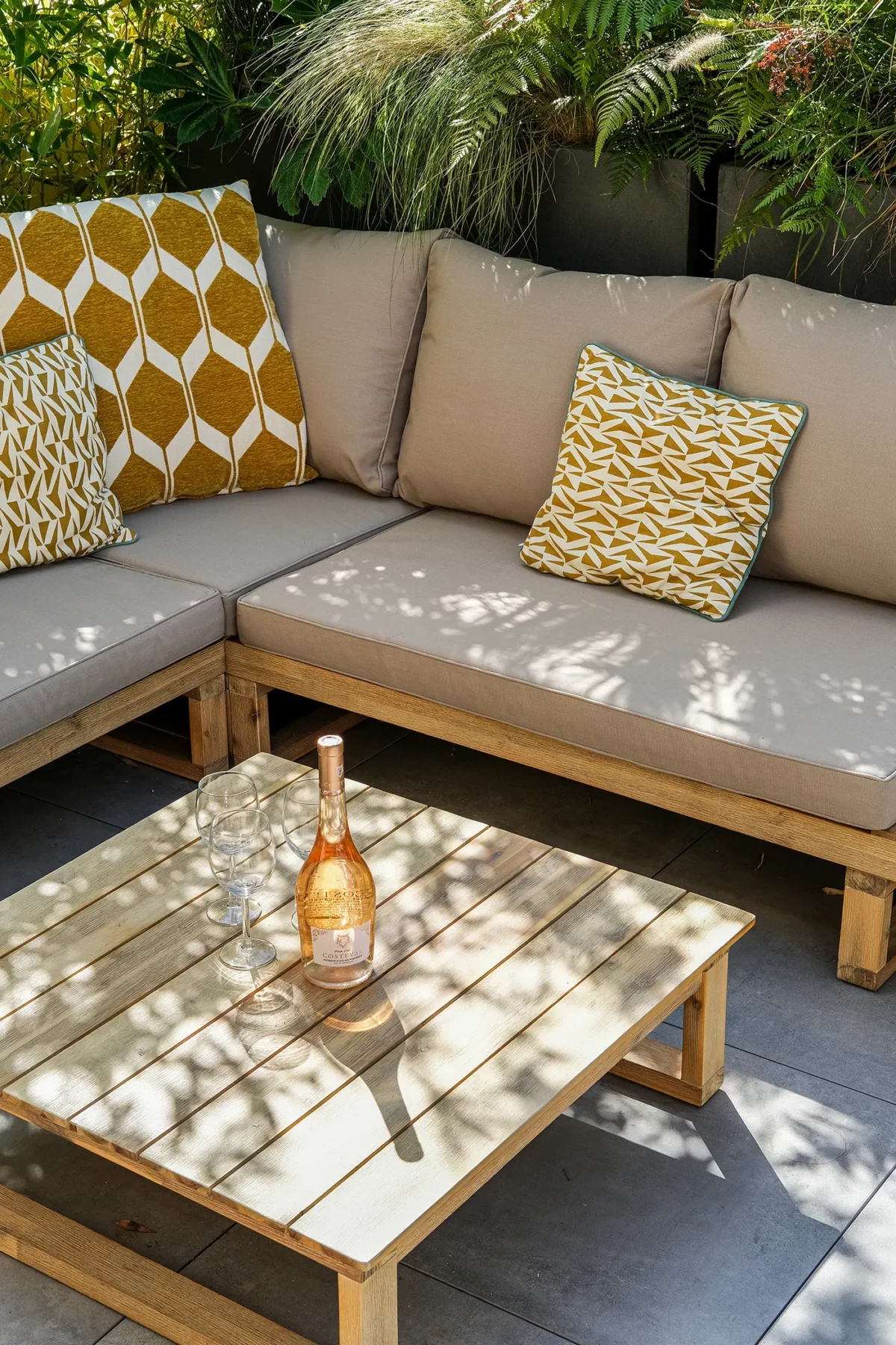 - Un salon extérieur confortable, pour se détendre en toute sérénité.