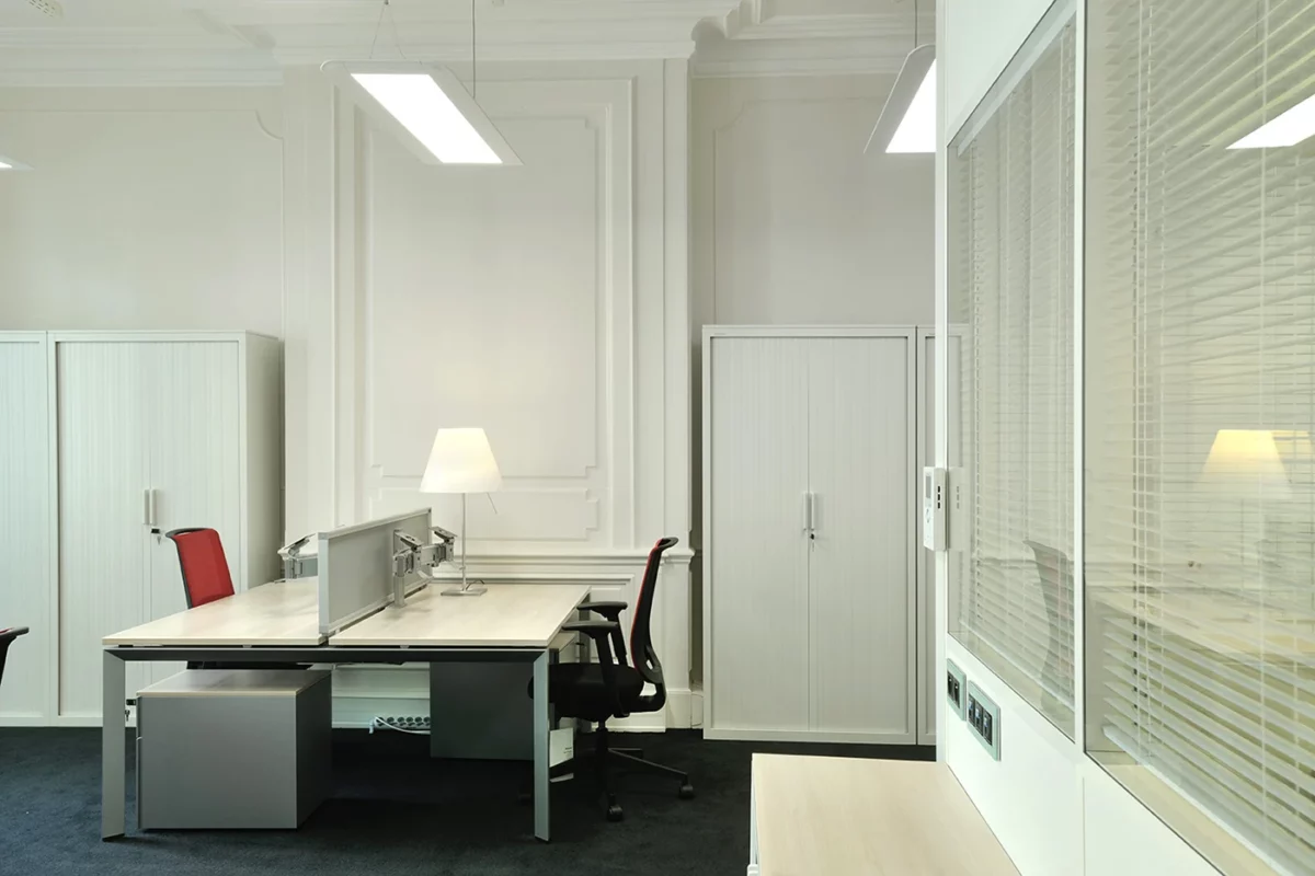 Cette transformation complète des bureaux de la Société Générale Private Banking incarne une rénovation réussie, alliant fonctionnalité, élégance et respect du patrimoine architectural. L’intervention a permis de moderniser l’ensemble des espaces tout en sublimant les détails classiques du bâtiment, tels que les moulures et les cheminées d’époque.