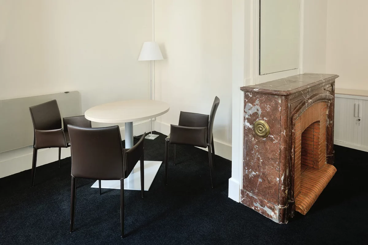 - Matériaux nobles : Sol en moquette acoustique de haute qualité et conservation de cheminées en marbre d’origine, soulignant le cachet d’origine.