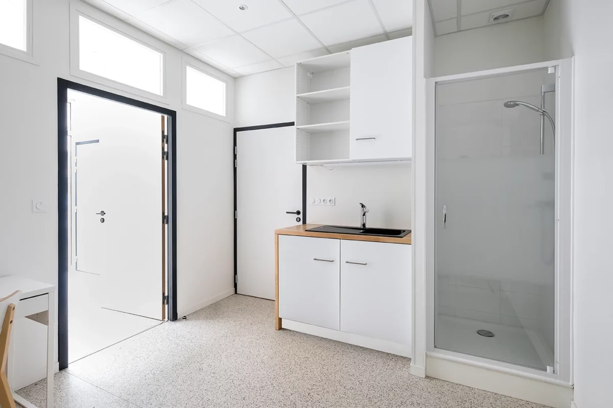 Situé dans le 7ᵉ arrondissement de Lyon, ce cabinet médical pour infirmiers, livré en janvier 2021, est un exemple d’optimisation d’un local vétuste. Sur une surface de 40 m², nous avons conçu un espace accueillant, lumineux et épuré, mêlant fonctionnalité et esthétisme.